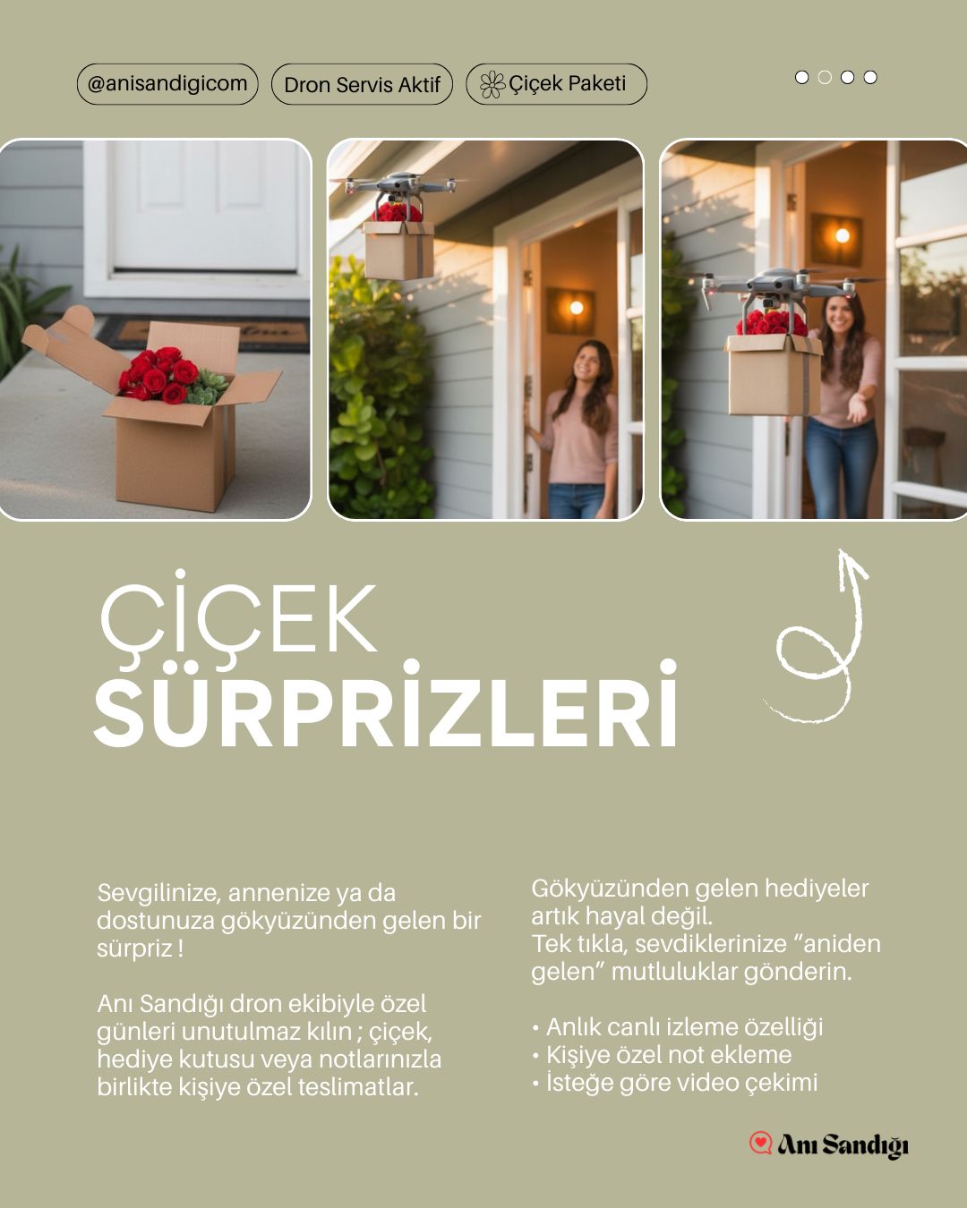 - Özel mesajınız ve hediyeniz, drone pilotumuz eşliğinde planlanan zamanda teslim edilir.