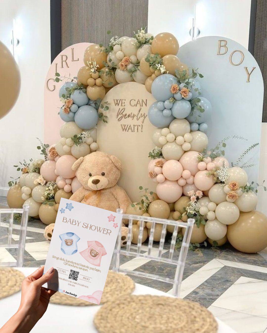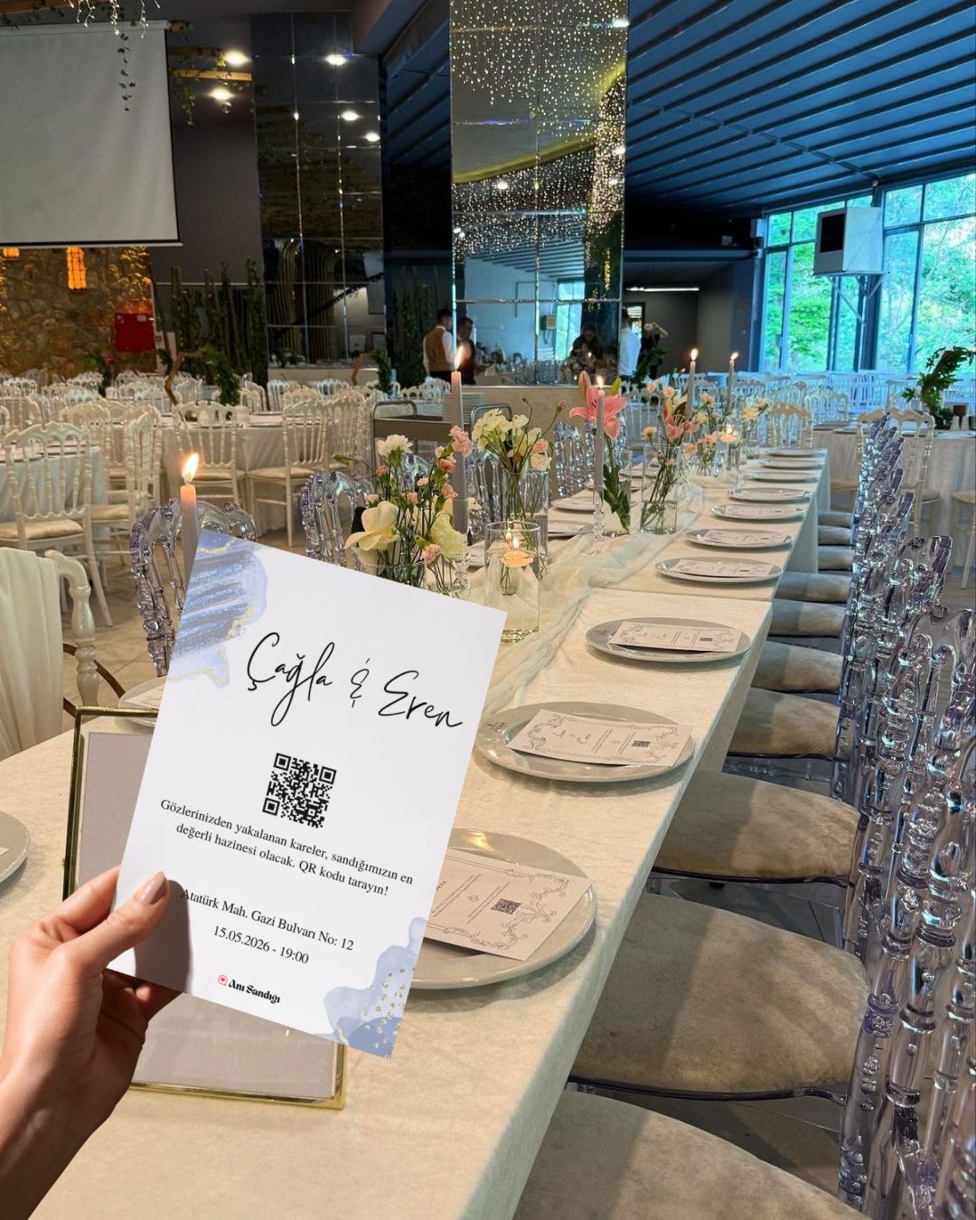 - Düğün, doğum günü veya kutlama mekanının girişine yerleştirilen, üzerinde QR kod bulunan şık bir panodur.