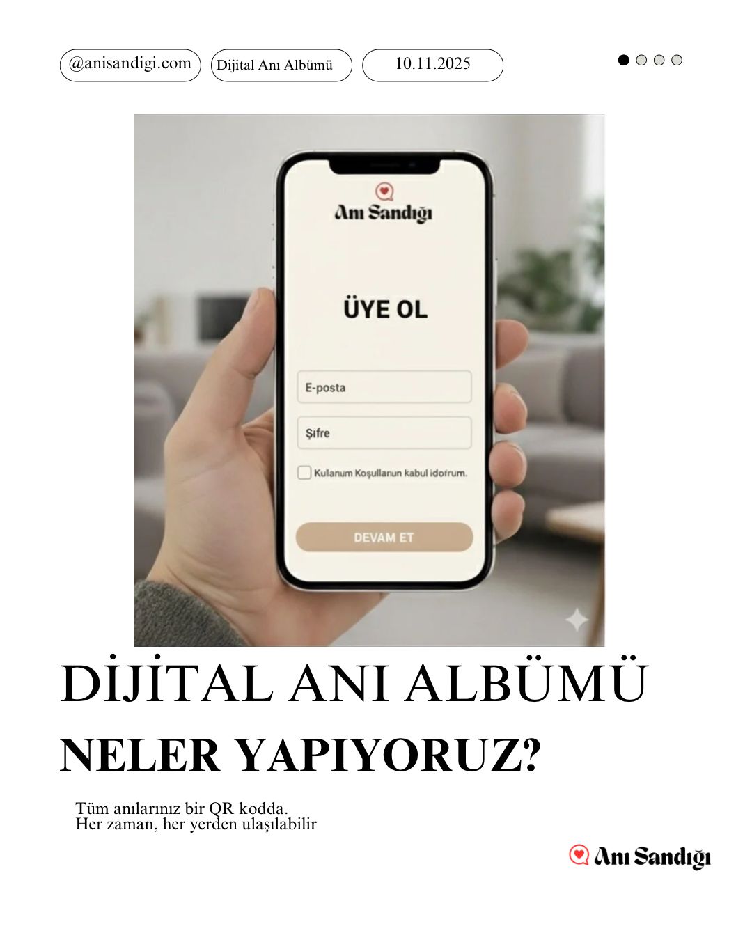 - Anı Sandığı Özelliği: Her davetiye, misafirlerinizin o gün çektikleri fotoğraf, video ve sesli notları kolayca yükleyebileceği size özel bir dijital albüm linki içerir.