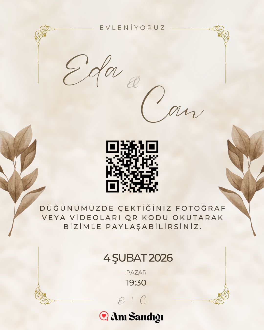 💌 QR Kodlu Dijital Davetiye & Dijital Anı Albümü (Temel Hizmet)
