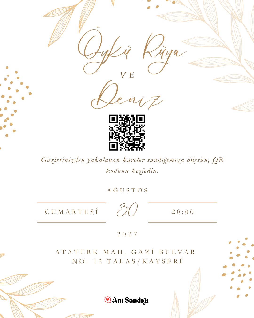 Sadece davet etmez, anı toplar, paylaşır ve sonsuza dek saklar. Düğün, Kına Gecesi, Bride To Be, Baby Shower, Doğum Günü, Mezuniyet… Hayatınızdaki her özel an için yanınızdayız!